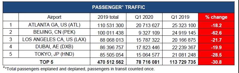 ACI还发布了2020第一季度的数据,显示了冠状病毒疫情对货运枢纽的影响。(下图)